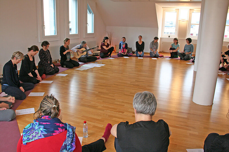 Ein besonderes Highlight war die Yogastunde mit musikalischer Begleitung von Angela Hänni und Roman Arthur Wiedemar. Die schöne Stimmung ging danach weiter beim gemeinsamen Singen von berührenden und heilsamen Mantras und Weltlieder.